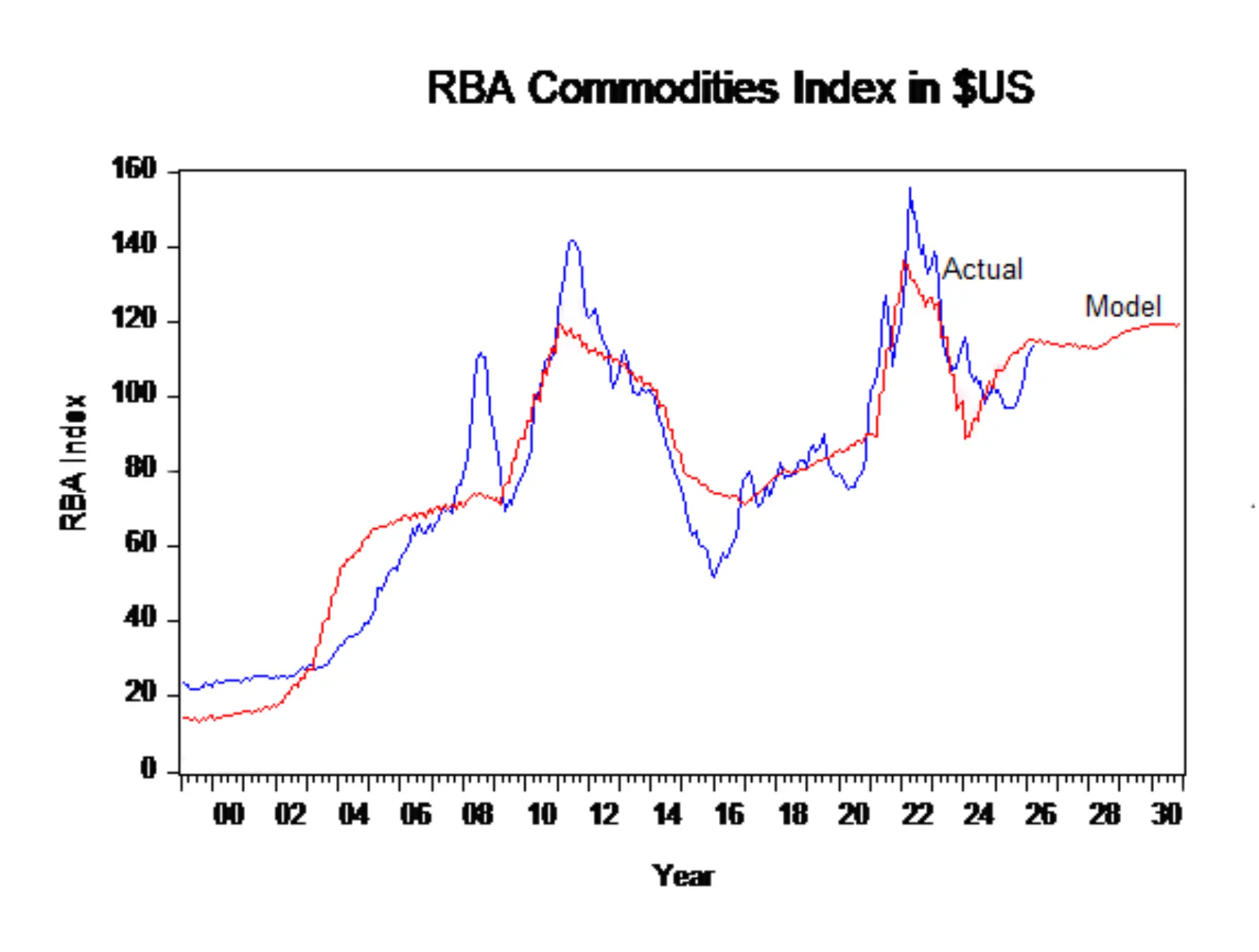 Australia’s export sector remains a critical stabiliser. One of the clearest indicators is the RBA commodities index measured in US dollar terms. Our model explains 88% of monthly variation in this Index . Australian Export Prices have risen 18% since last June . Our model tells us this strength will continue. High Export prices flow through as higher domestic income. Periods when export prices overshoot the model are typically explained by higher energy prices. Right now, oil prices are leading to higher LNG prices and higher coal prices.